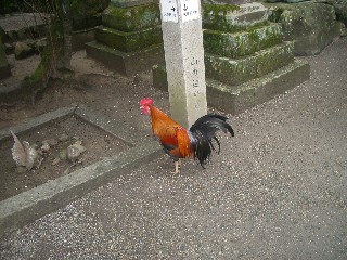 参道には、神からの遣いか、幸せの鶏が放し飼いにされています