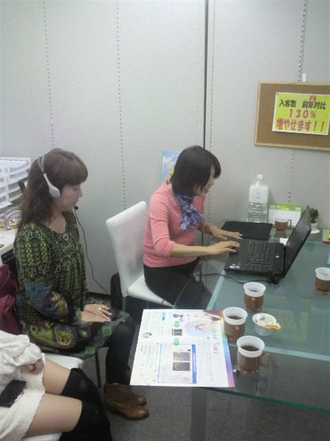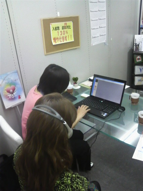 インカムを通して発せられた声の情報を、波動としてパソコンにインプット中