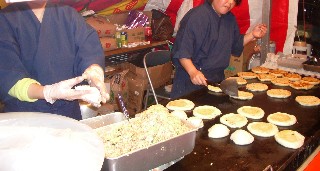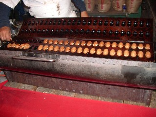 毎年恒例、出口付近にある屋台でみんなで缶ビールを片手にたこ焼きを頬張り~の、物珍しい出店を発見