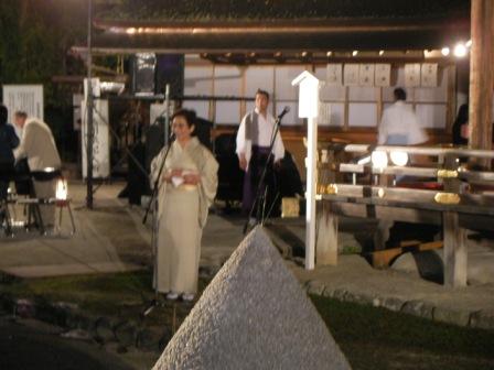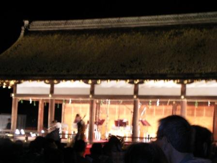 上賀茂神社の境内の森や川から発せられるマイナスイオンを身体に浴び、クラッシック音楽により脳内にアルファー波をたっぷりだし、最高のりザクゼーションを体感する事ができました。上賀茂神社「細殿」 司会者 田渕あきら