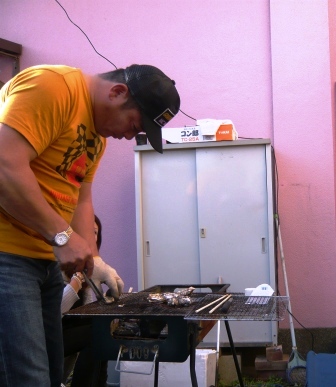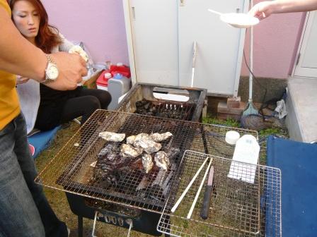 50kgの牡蠣を長崎から取り寄せて3日間通しで振る舞い牡蠣BBQをしてるんです。