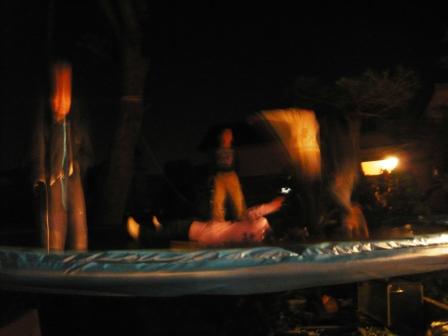 お庭にセットアップされている トランポリンに子供たちがた~くさん飛んでいました