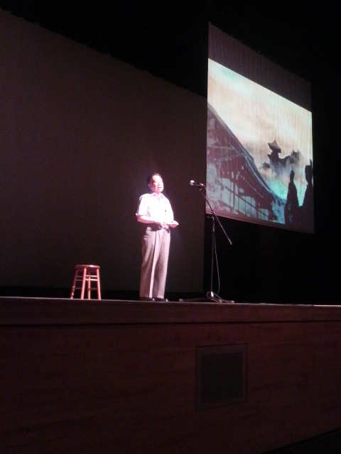 今回は、語りにあわせたCGをスクリーンに映し出し、また、話の情景にあわせて生の笛の音もお楽しみいただきました。