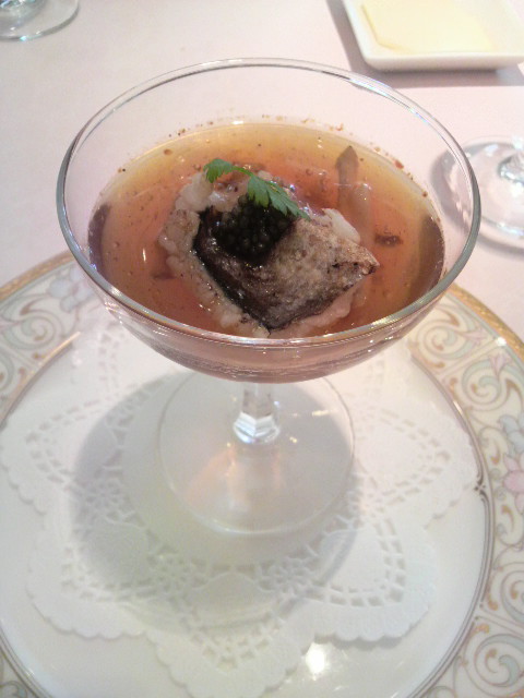 焼き鱧と松茸のコンソメ冷製スープです